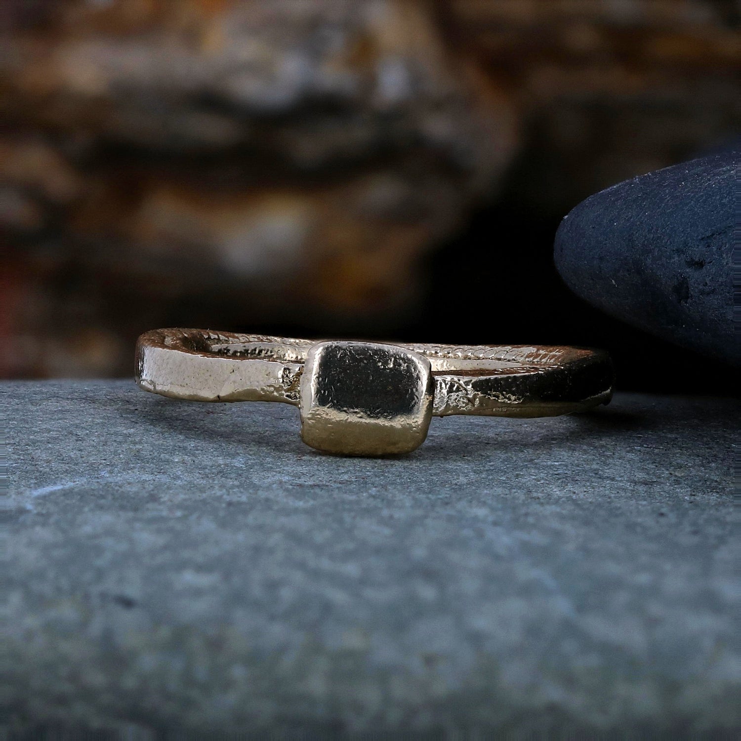 We cast these rings in sterling silver or 14 karat white, yellow and rose gold. The small square decoration that sits on top of the ring can have a single initial stamped into it if desired for no extra charge. This ring is available in sizes 4-9.