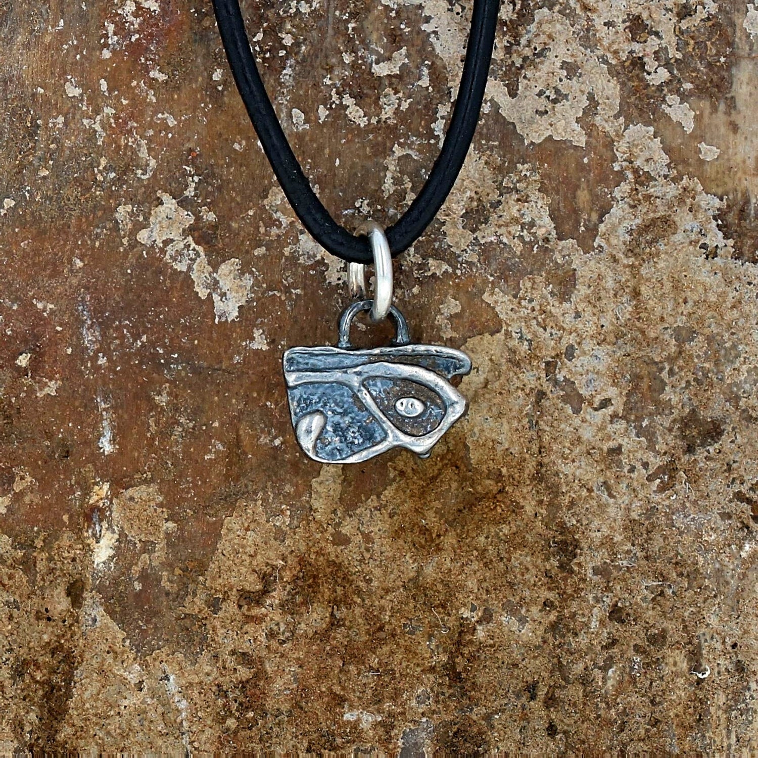 Our Eye of Horus is cast from an ancient Egyptian bead dating between 600 and 300 BCE. We made a mold of this fascinating artifact and cast it in a lustrous sterling silver.