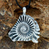 If you are looking for a large piece of jewelry inspired by ancient natural design, look no further. This spiraling work of art was created by a small creature that lived during the Jurassic Period (199.6-145.5 million years ago). This pendant was created using traditional lost wax casting techniques utilizing a hand made mold of the actual fossil. This piece is cast in fine sterling silver (.925) or solid 14 karat gold and is finished completely by hand.