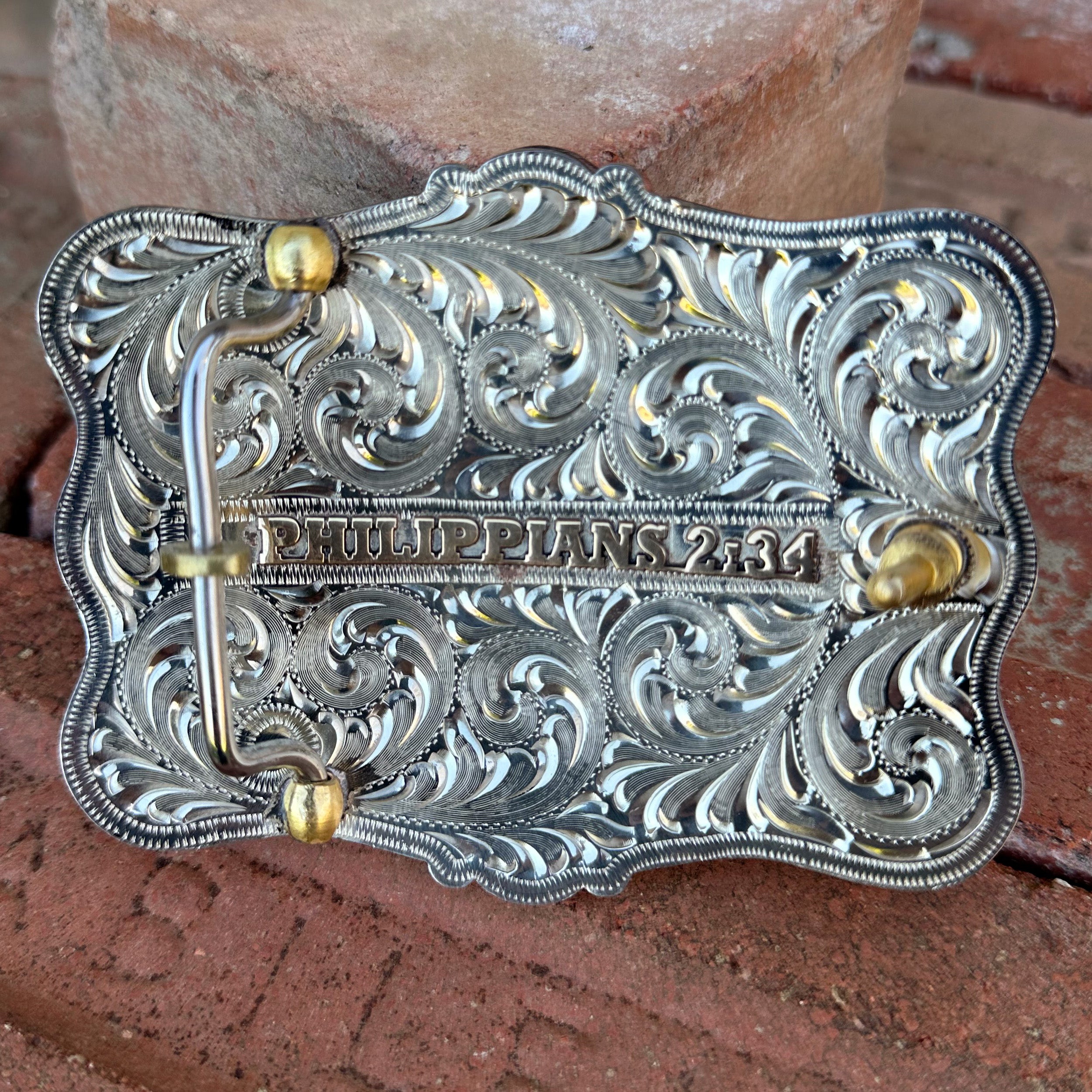 Belt buckles are shipped via USPS ground advantage. Belt buckles have a production time of approximately 60 business days before they will ship. Returns are not accepted for belt buckles due to their customization.